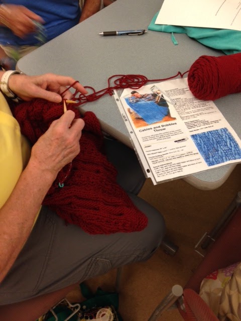 Linda brought in her finished 'Football Season' scarf . . . with a matching Patriot's hat. What lucky grandkids!!